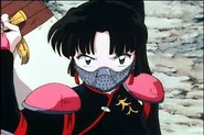 - Ihr Mundschutz schützt sie sogar vor Narakus Miasma, sie gibt ihren Mundschutz auch Rin und später Miroku, damit beide nicht vom Miasma getötet werden.