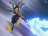 - Explosión de Relámpago: Hiten es capaz de almacenar una gran cantidad de energía eléctrica en su mano y descargarla de golpe, desintegrando lo que toque directamente este rayo.