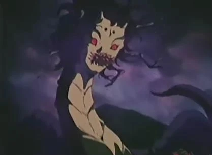 Éste grotesco demonio vivía en una cueva bajo la aldea de Jinenji, donde había puesto sus huevos y tenía decenas de crías listas para nacer. Los aldeanos culpaban al Hanyō Jinenji de las muertes que había en su aldea. La primera vez que Inuyasha conoce a Jinenji se entera que lo culpan de las muertes, sin embargo su olfato dice que fue otro ser, guiado por su olfato descubre un nido donde hay decenas de huevos recién eclosionados, por lo que vuelve a la aldea, ya que Aome corría peligro. Mientras los aldeanos atacan la casa de Jinenji, éste monstruo saca a sus crías y los ataca, Aome le lanza una flecha, pero el demonio ataca a Aome y la deja inconsciente. Jinenji, entonces, lucha con el demonio, ya que considera que Aome es la primera persona que lo trata como un ser normal así que la protegerá. Jinenji derrota al monstruo, al tiempo que Inuyasha acaba con todas sus crías usando las Garras de Acero.