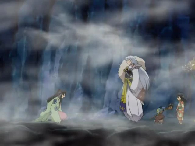 Cuando ambas hermanas luchaban contra Kirinmaru, Sesshomaru interviene a favor de sus hijas ahuyentando por el momento al Daiyokai [14]