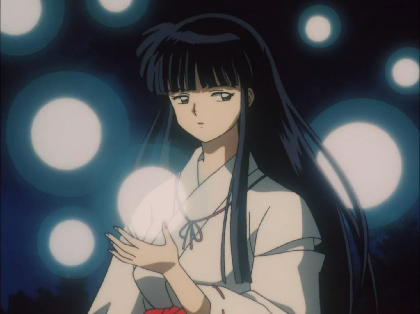 * "I poteri spirituali di Kikyo si manifestano come un bagliore di luce color lavanda, sebbene in alcune occasioni sia azzurro."