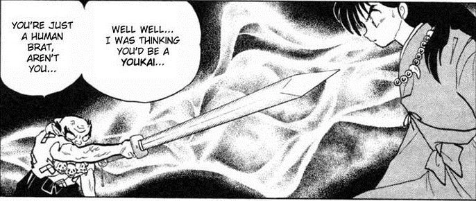 - Miroku notices an evil aura approaching them. Its Kaijinbō. He says his sword longs for Inuyasha's blood. He explains that the blade he made, Tōkijin, was forged from Goshinki's fangs. In other words, the blade is steeped in Goshinki's hatred for Inuyasha, the half-demon who killed him.