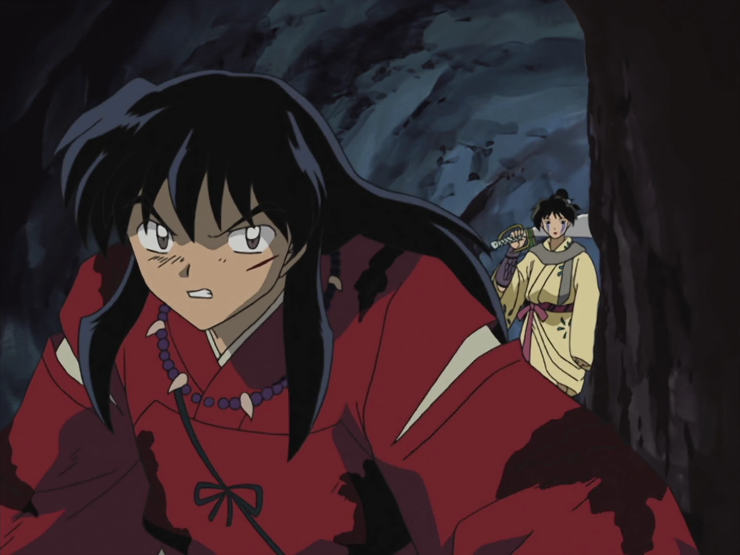 Inuyasha has been turned human after being forced through the sacred barrier by Renkotsu, and Jakotsu fights him. Without his powers, Inuyasha is at a disadvantage, suffering many injuries from Jakotsu (who finds his human form more attractive than his demon form) and losing a lot of blood.