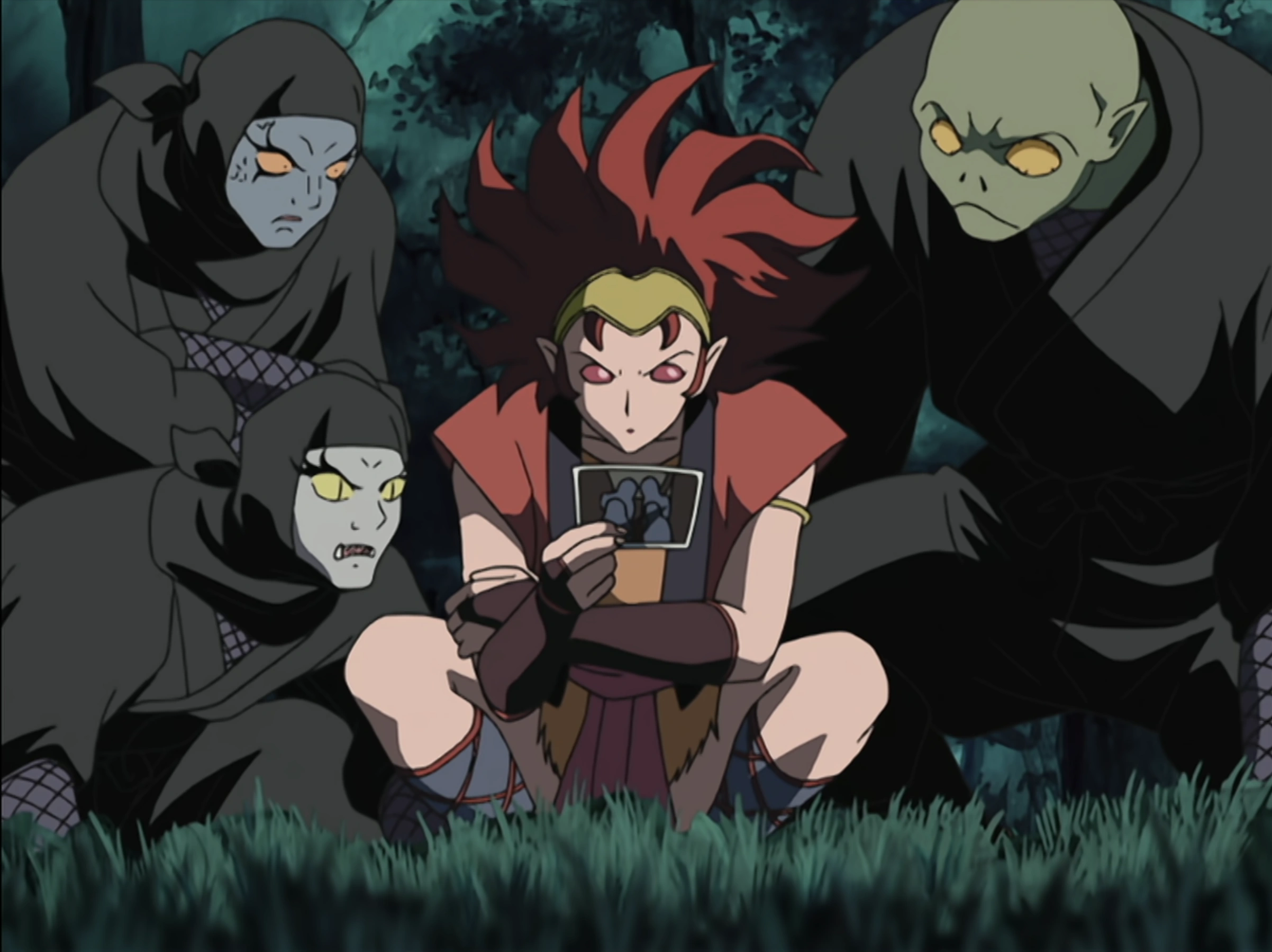 The demon ninjas find Kagome's photograph.
