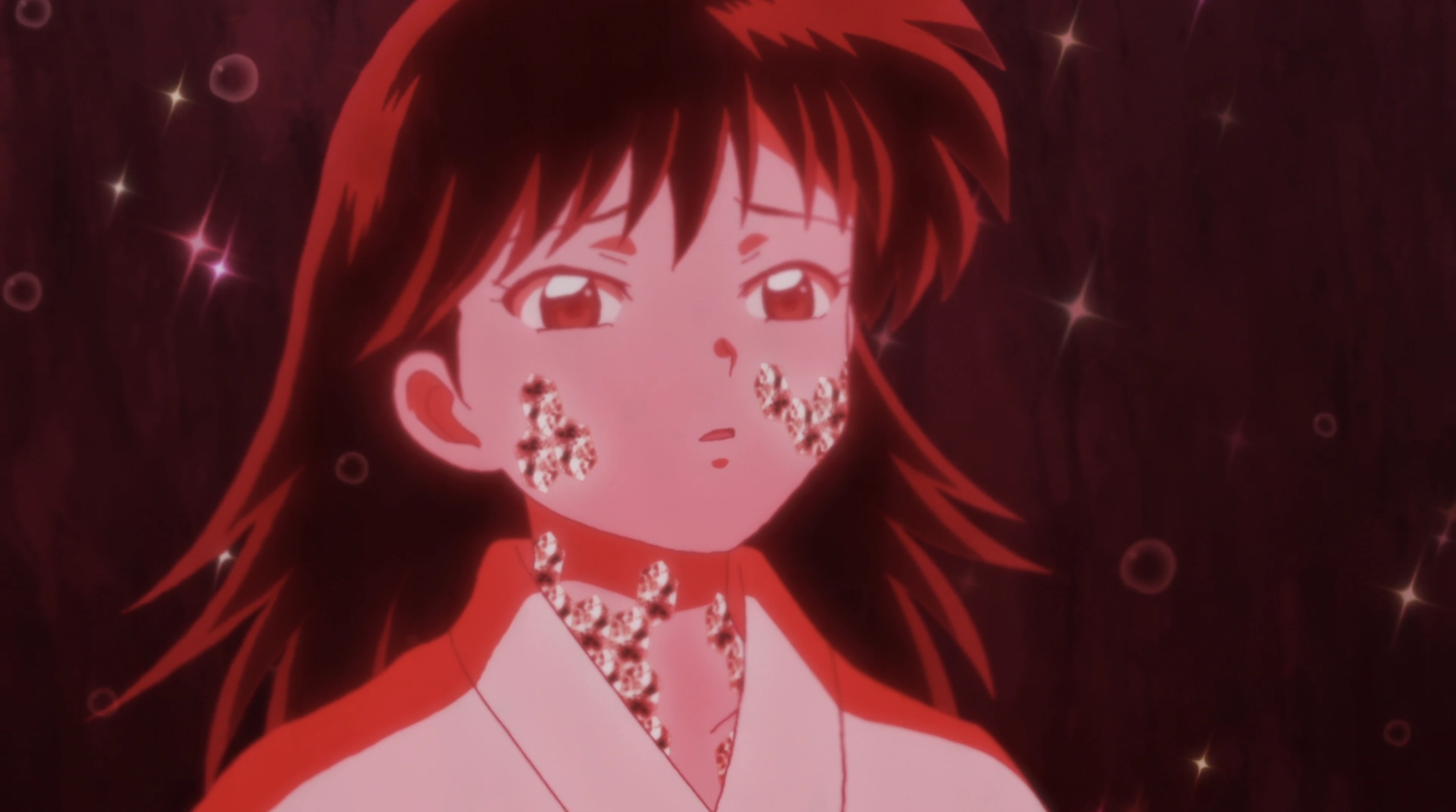Rin would be affected by the incarnation of the evil within the Shikon Jewel unleashed by Naraku and brought to be used as bait to preclude anyone from using their destructive powers on him and his huge spider body. She is rescued none the less and together with Kohaku riding on A-Un would assist to the destruction of Naraku.