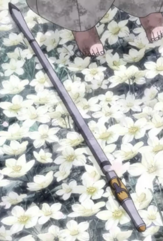 Furious, Zero raised her staff above her head, and sent the pointed end towards her neck. Just before the staff could impale Zero's neck, Setsuna cut the thread of fate that linked Zero to Tōga's spirit by her Yukari no Tachikiri. The staff stopped at Zero's neck and fell harmlessly to the ground. After Zero asked Riku to put her to rest and was fatally stabbed by him, she used her staff to show the half-demons twins why Kirinmaru hated half-demons. Zero also used the staff to telepathically communicate with Kirinmaru before dying. Her staff fell to the floor and restored the flowers around Nanahoshi's mansion.